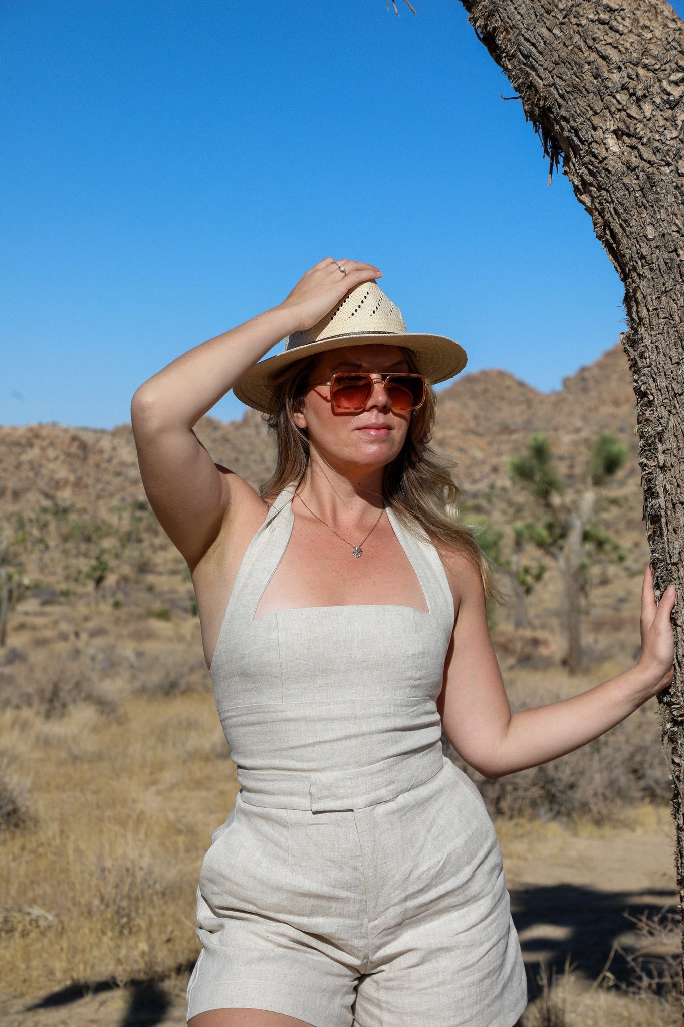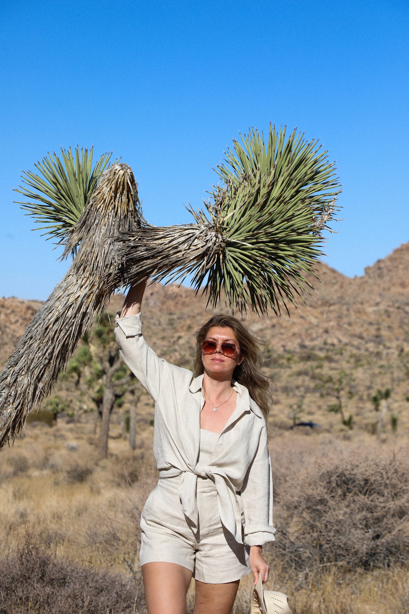 We use 100% pure linen — no blends, no shortcuts. Just breathable, natural fibre that gets softer with every wear. Our pieces are made in partnership with small-scale manufacturers who specialise in craftsmanship, not mass production. Every seam, stitch and shirred panel is done with intention — because details matter.